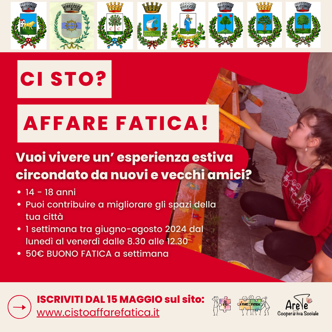 📣Dal 15 maggio 2024 ore 12,00 saranno aperte le iscrizioni per la nuova edizione del progetto “Ci Sto? Affare fatica!” 2024.